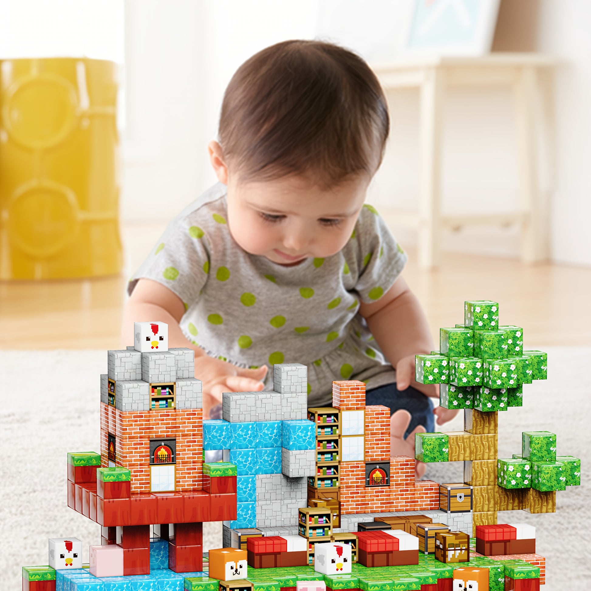 Le Jeu de Blocs de Construction Magnétiques est un Ensemble Soigneusement Conçu de Tuiles Architecturales, Parfait comme Jouet pour Garçons et Filles de 3 à 10 Ans. Aidez les Enfants à Apprendre tout en S'amusant