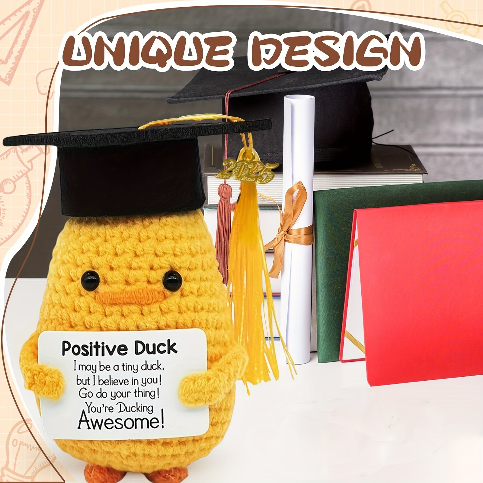 2025 Cadeau de Diplômation - Canard Mignon avec Toque et Carte, Présent Unique Tissé à la Main Parfait pour les Étudiantes Universitaires, Idéal pour les Fêtes de Remise des Diplômes