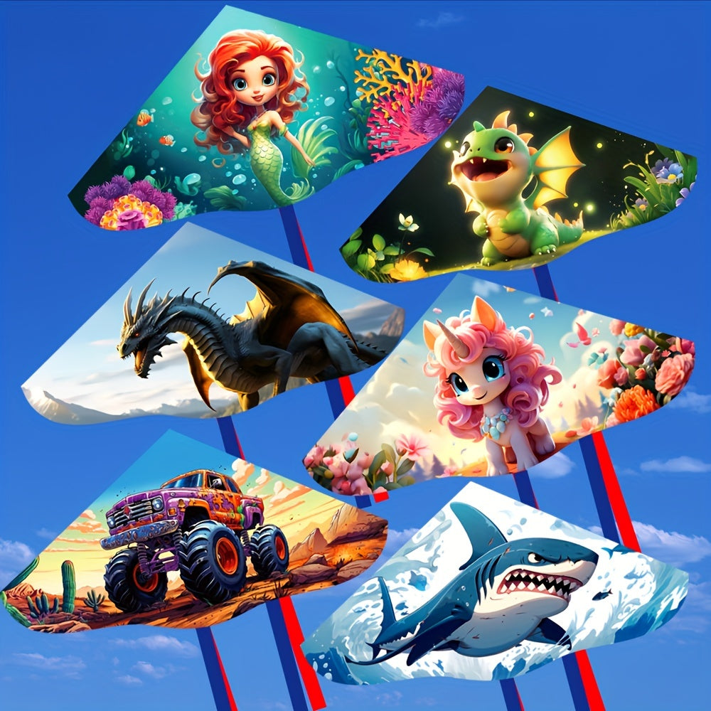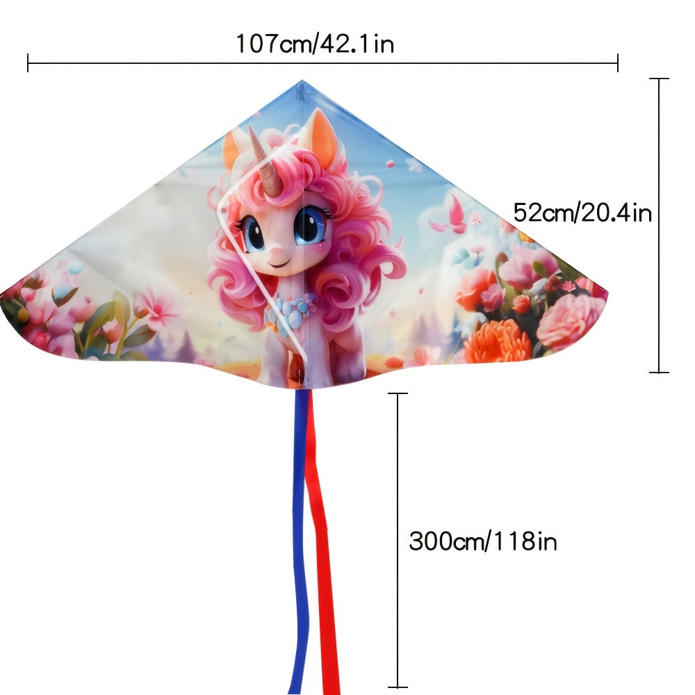 1 cerf-volant triangulaire à motif de dessin animé, comprenant une ligne de 1968.5 pouces, adapté aux divertissements de plein air et aux cadeaux de Noël.