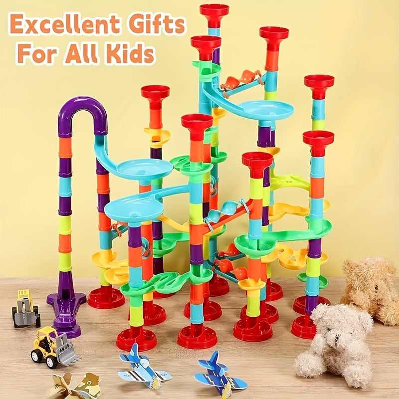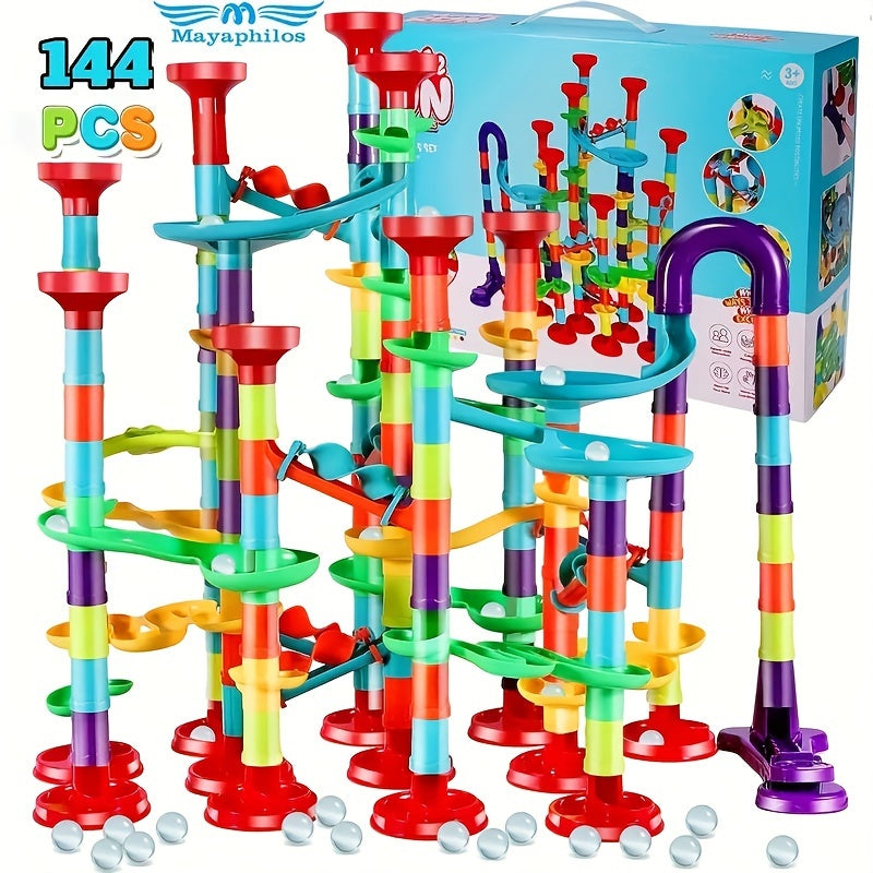 Jeu de construction de parcours de marbre MAYAPHILOS 144pièces, jeu éducatif de blocs de construction pour enfants, filles et garçons, cadeau de Noël et d'anniversaire, résine ABS, couleurs assorties, amusement ludique