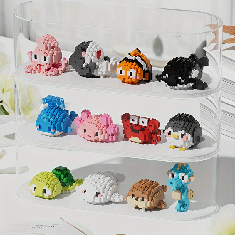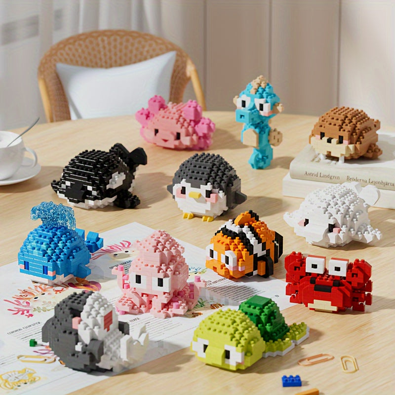 Version Boîte Cadeau de 12 Petites Boîtes Série Petites Créatures de l'Océan Micro Blocs de Construction Granulaires